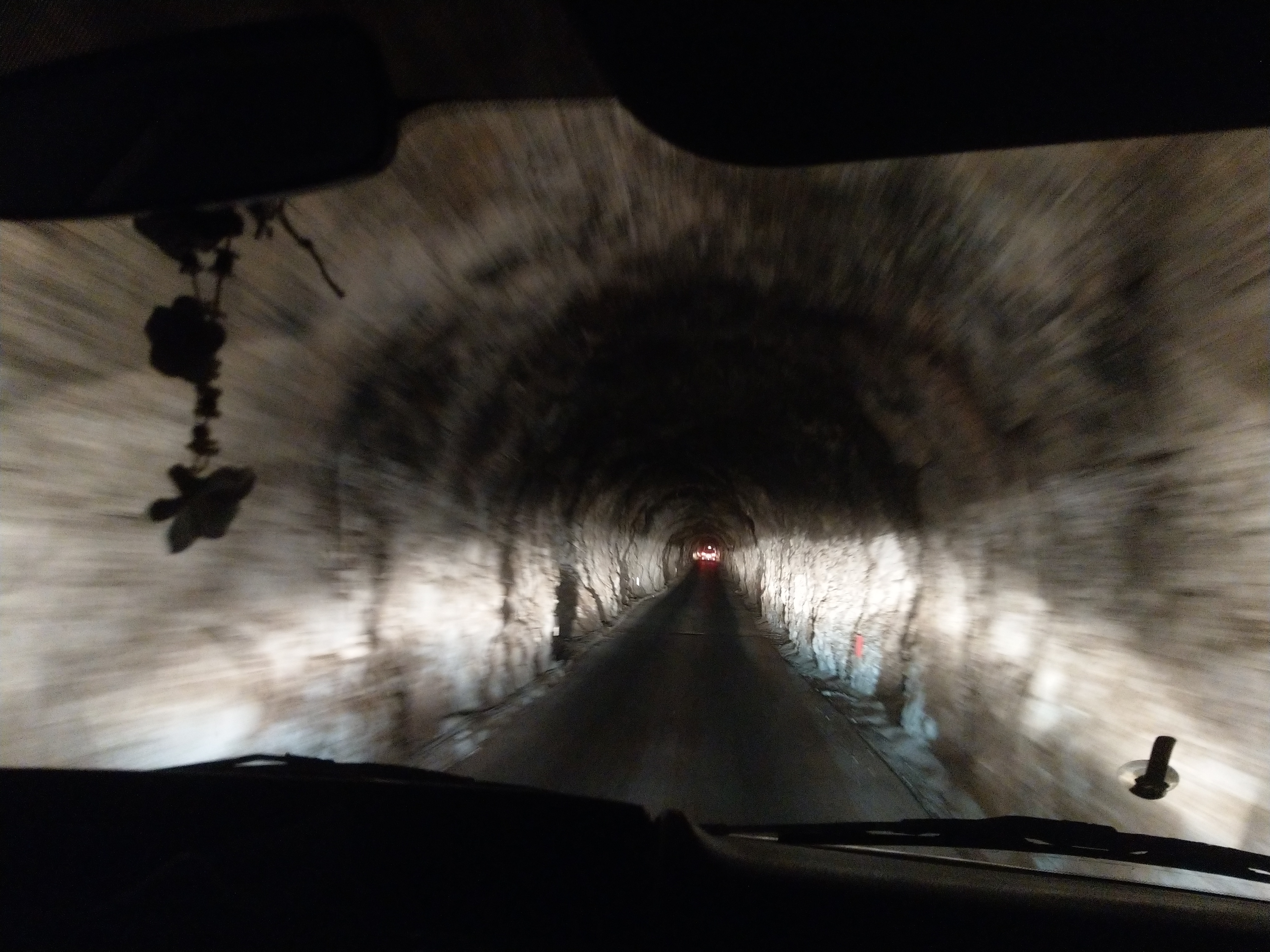 Man muss dazu sagen, dass die Straßen auf Hvar allgemein sehr schmal sind. Große Wohnmobile und Wohnwägen findet man hier so gut wie keine. Einige Straßen sind für diese auch gesperrt. Vor uns lag also nun ein 1,5 km langer Tunnel. Laut Beschilderung 2,70 m hoch und 2,30 m breit. Hmm. Laut Fahrzeugschein ist unser Auto 2,75 m. Aber laut Michi hat der TÜV-Prüfer großzügig gemessen. Wagen wir es also. Was sollen wir sagen, das waren vermutlich die bis dato schrecklichsten, längsten und am meisten Angstschweiß produzierenden Kilometer unseres Lebens 😀 . Inklusive Deckenkontakt der Antenne.