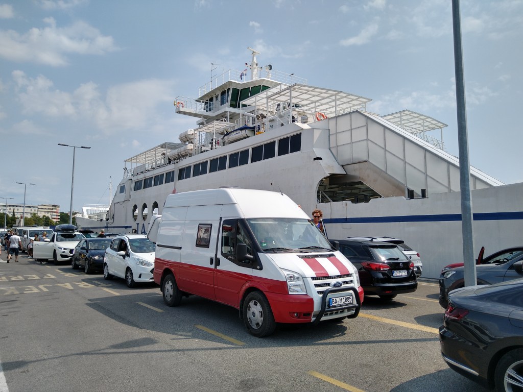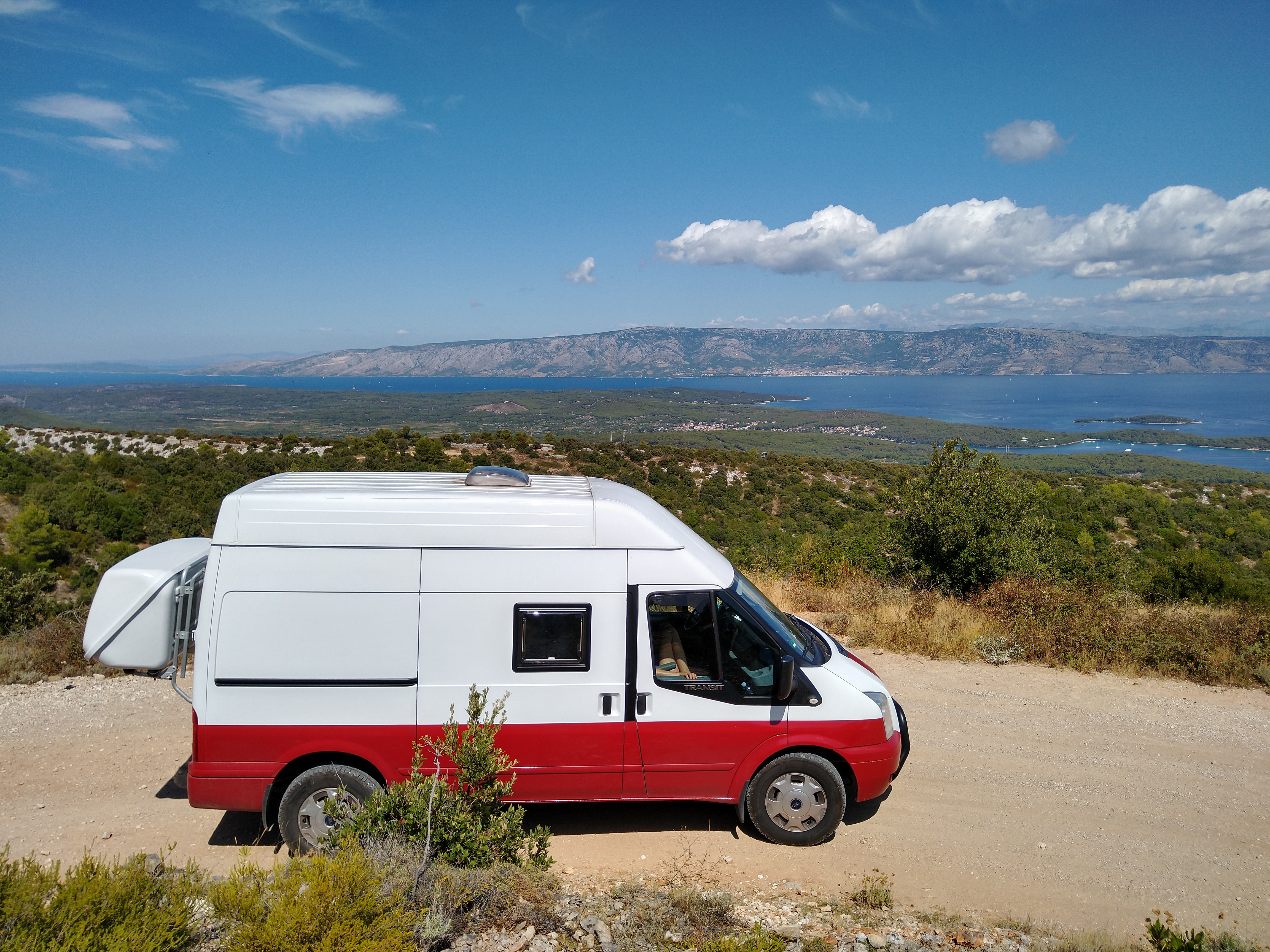 Als nächstes Ziel hatten wir uns die für uns bisher unbekannte kroatische Insel Hvar ausgesucht. Erreichen kann man diese von Split aus mit der Fähre. Als Zwischenstopp wollten wir einen Campingplatz direkt an der Küstenstraße anfahren. Laut Google Maps gibt es davon entlang der Adria auch unzählige. Doch was wir vorgefunden hatten entsprach so gar nicht unseren Vorstellungen. Auto an Auto in der prallen Sonne eingequetscht auf einem schmalen Streifen zwischen Straße und Meer. Wir entschieden uns daher in eine kleine Bucht zu fahren. Doch schon auf dem Weg Richtung Meer wurden wir von einer Horde schleimiger Italiener empfangen, die uns buhlend um unsere Gunst auf ihre paar Quadratmeter Campingfläche locken wollten. Hungrig und müde gaben wir schließlich klein bei. „Besonders schöner schattiger Platz“ entpuppte sich als Vorgarten der Nachbarn, die uns (wie alle anderen Camper) grimmig begutachteten. Vom Senior Chef wurden wir dann noch mit „Nicht schon wieder Deutsche, können nicht mal Italiener kommen“ begrüßt. Der Wasserdruck in den Duschen war nicht vorhanden und dann fing es auch noch an zu regnen. Alles in allem ein sehr schöner Ausflug und wir waren mehr als erleichtert, als wir am nächsten Morgen wieder entspannt in unserem Bus entlang der Küste unterwegs waren 🙂