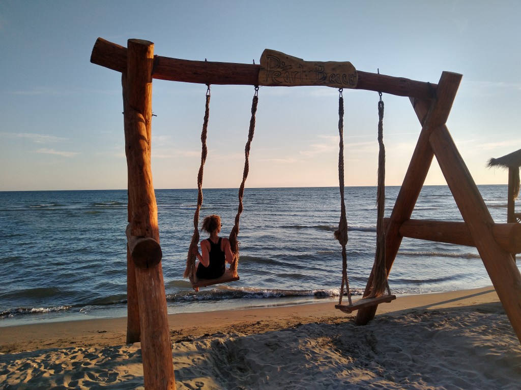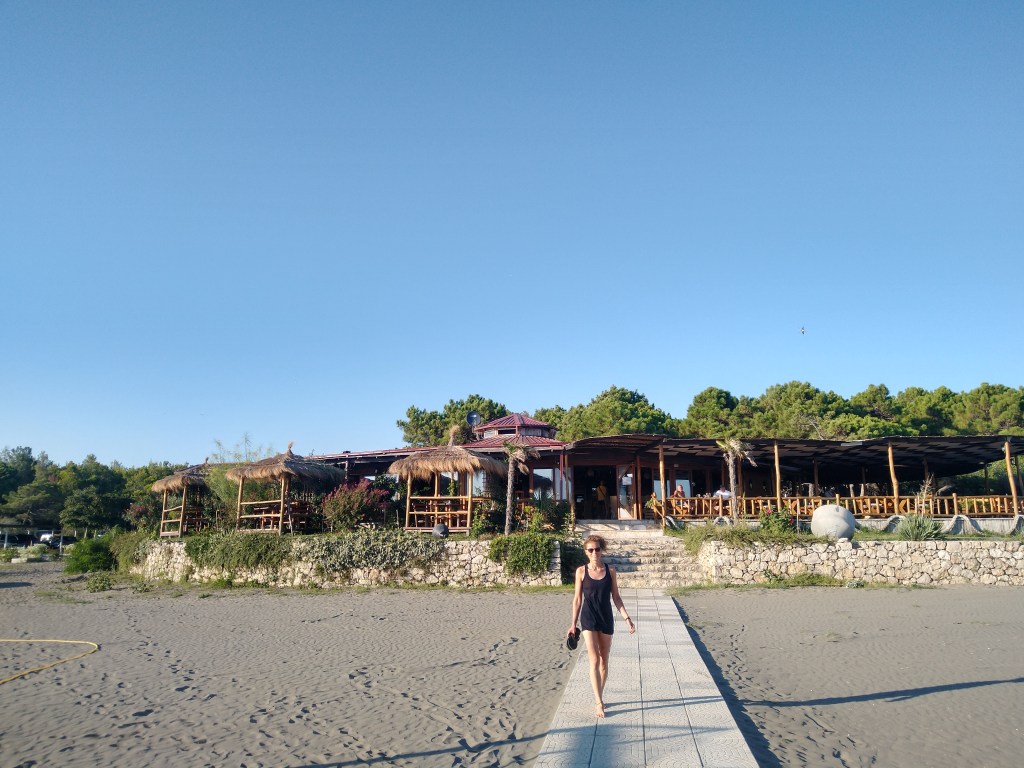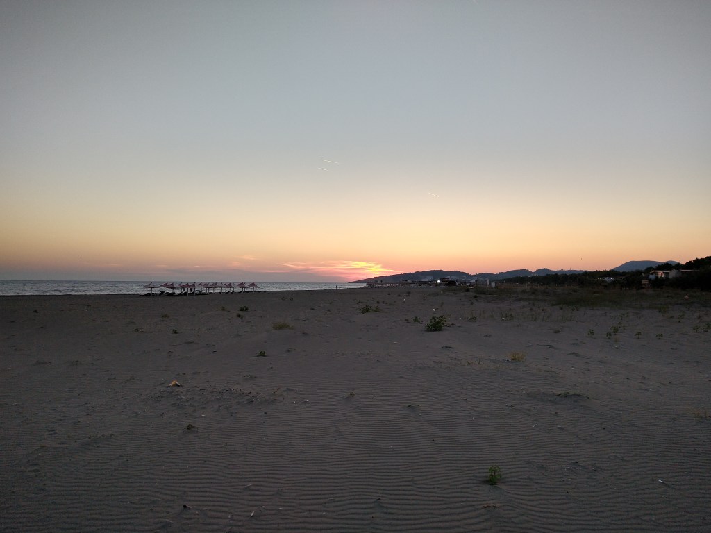 Da unsere Reise keinem größeren Plan folgt, warfen wir wie immer einen Blick auf Google Maps um zu entscheiden, wo unser nächstes Ziel sein soll. Weiter südlich kurz vor der albanischen Grenze stach uns ein Strandabschnitt mit wohlklingenden Namen wie Miami Beach, Safari Beach, Havana oder Kopakabana ins Auge. Das sollte es werden! Und tatsächlich hat uns eine komplett andere Seite Montenegros erwartet: ein Kilometer langer Sand(!)strand (bisher kannten wir nur Felsen und Kies) mit touristischen Attraktionen wie Strandliegen, Schaukeln, Eisständen, Strandverkäufern, Spielplätzen und Restaurants. Und das zu Hunderten aneinandergereiht! Der Strand erschien uns beinahe endlos. Zum Glück fanden wir am Tropicana Beach einen Campingplatz und Strandabschnitt jenseits des ganzen Troubles. Doch nicht nur beim Strand, sondern auch beim Klientel zeigten sich Kontraste und wachsende kulturelle Unterschiede. Wo sich in Kroatien noch vermehrt Frauen oben ohne am Strand zeigten, war der Burkini hier bereits ganz alltäglich.
