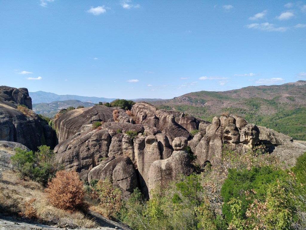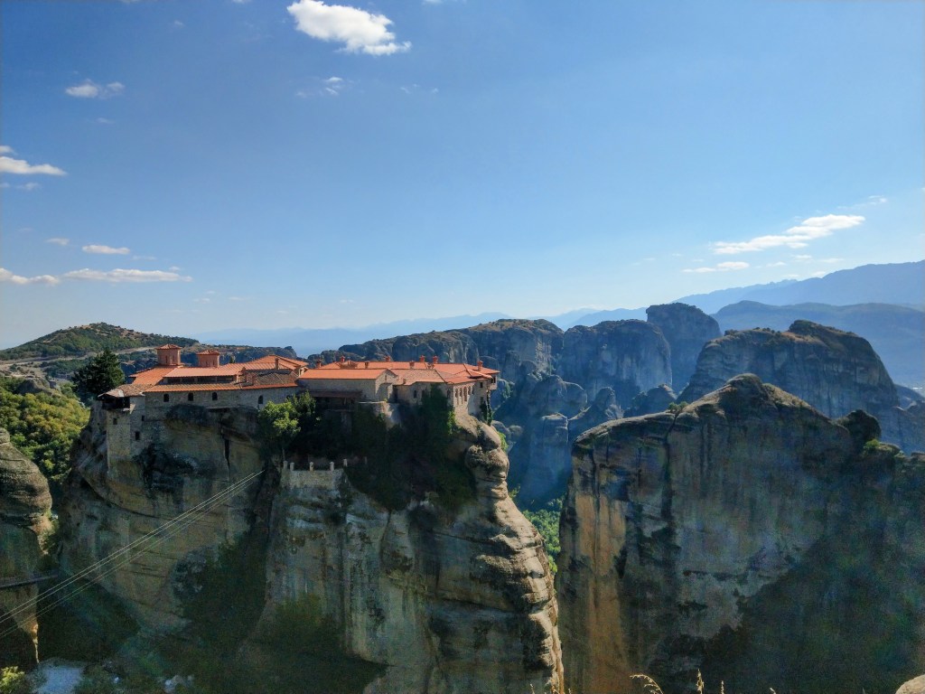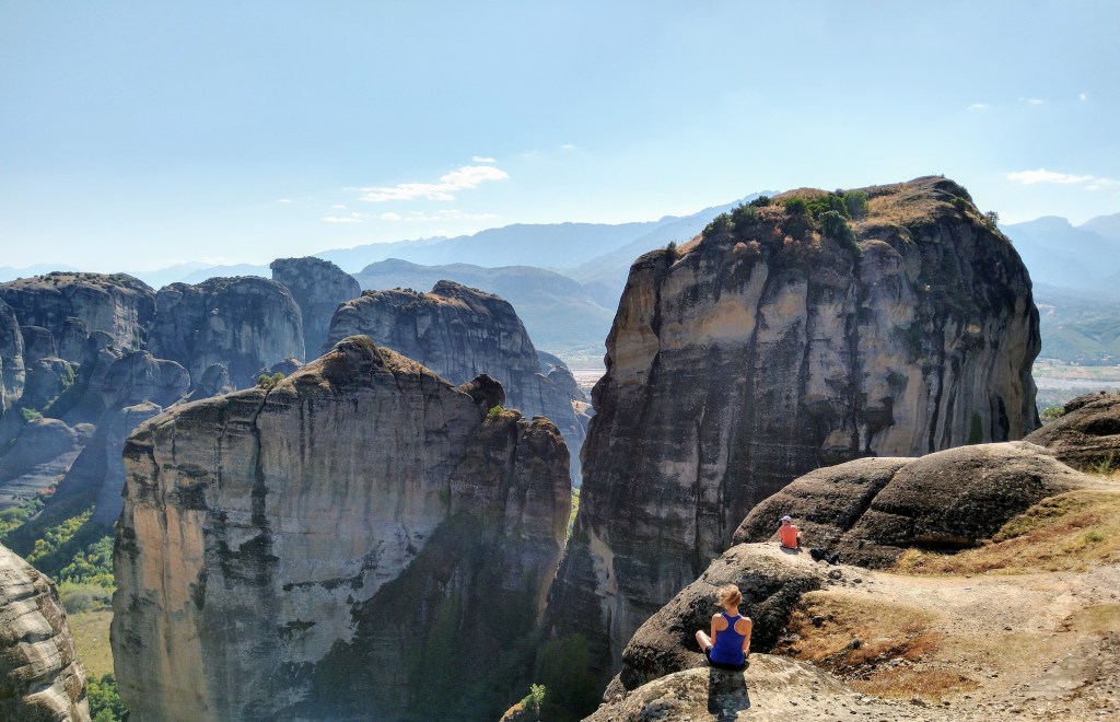 Den nächsten Zwischenstopp legten an einem deutlich bekannteren Ort in Griechenland ein: den Klöstern von Meteora. Es handelt sich dabei um insgesamt 24 Klöster, die auf hohen Sandsteinfelsen gebaut wurden und bei dunstiger Luft manchmal zu schweben scheinen. Sechs der Klöster sind heute noch bewohnt und können teilweise besichtigt werden. Die meisten Besucher fahren (leider) mit Auto oder Bus von Kloster zu Kloster. Tatsächlich gibt es aber tolle Wanderwege inmitten der Felsen, von denen sich tolle Blicke auf die Felsen und das Naturspektakel bieten. Für die 6 Kilometer Wanderung brauchten wir vor lauter Staunen am Ende einen halben Tag 😀
