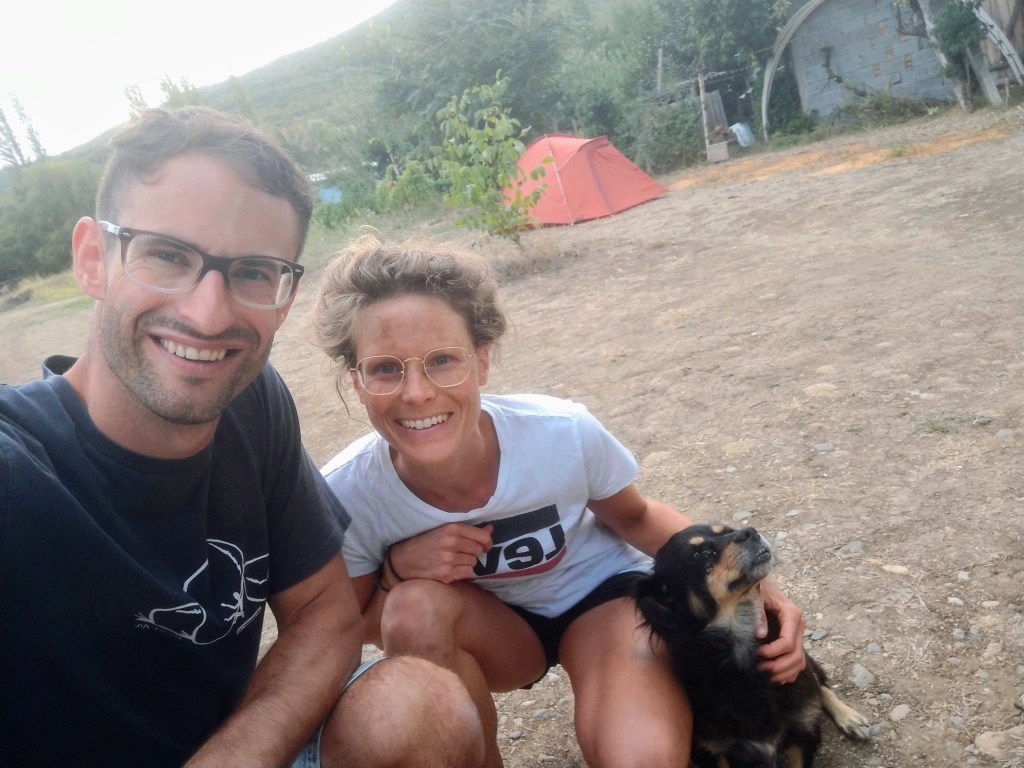 Unser erstes Ziel war das Rock Land Camp in der Nähe von Demir Kapija. Ein Klettercamp, also vielmehr Stellplätze und einfache Sanitäranlagen im Garten von Alex, einem über Thailand in Nordmazedonien gestrandeten Kasachen. Alex versorgte uns mit reichlich Infos und Empfehlungen zu den umliegenden Klettergebieten, in denen er vor ein paar Jahren auch selbst einen Teil der Routen eingebohrt hatte. Neben der Ziege und dem Esel des Nachbars hatten wir während unseres Aufenthalts die beste Gesellschaft überhaupt: „unsere“ Chiara ❤ So hatten wir sie zumindest genannt. Ein Straßenhund, der im Camp nicht von unserer Seite wich, unter unserem Auto schlief und uns auf Schritt und Tritt begleitete.