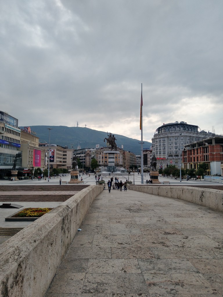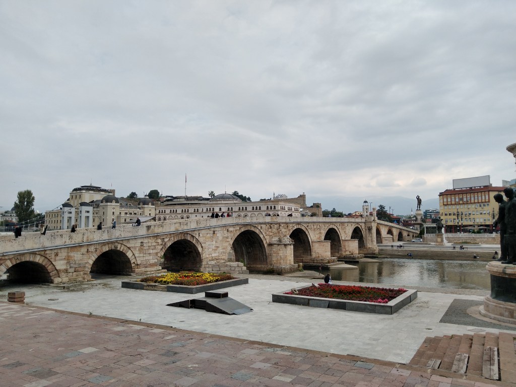 Der nächste Halt führte uns nach Skopje, die Haupstadt Nordmazedoniens. Wow, was für eine spektakuläre Stadt! Die türkisch prägte Altstadt (hier lebt ein Großteil der Albaner, Türken und Roma) und die Oberstadt, in der vornehmlich slawisch geprägte Mazedonier leben, werden durch den Fluss Vardar getrennt. Diese Trennung zeigt sich nicht nur bei der Bevölkerung, sondern auch in der Architektur.