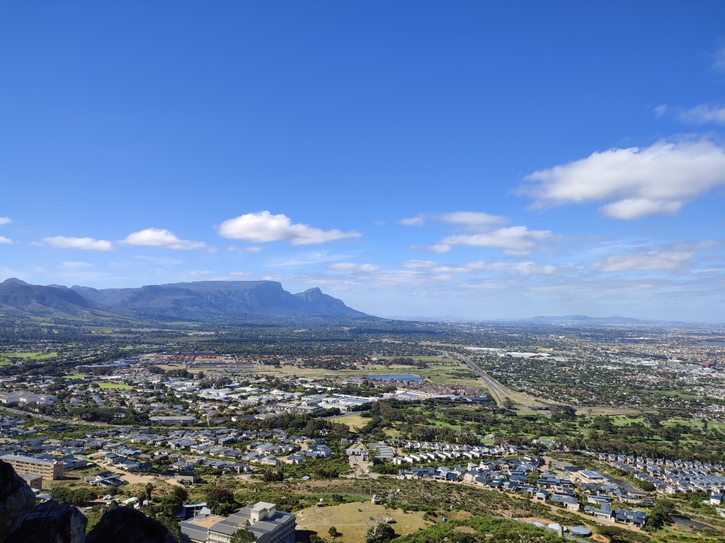 Die Dimensionen, in die sich Kapstadt und seine Vororte ausbreiten, sind enorm. Über knapp 30 Kilometer ist die Ebene komplett städtisch bebaut. Wir mussten unseren Mietwagen am Flughafen tauschen, da erscheint eine Fahrt im Stadtverkehr schon fast endlos!