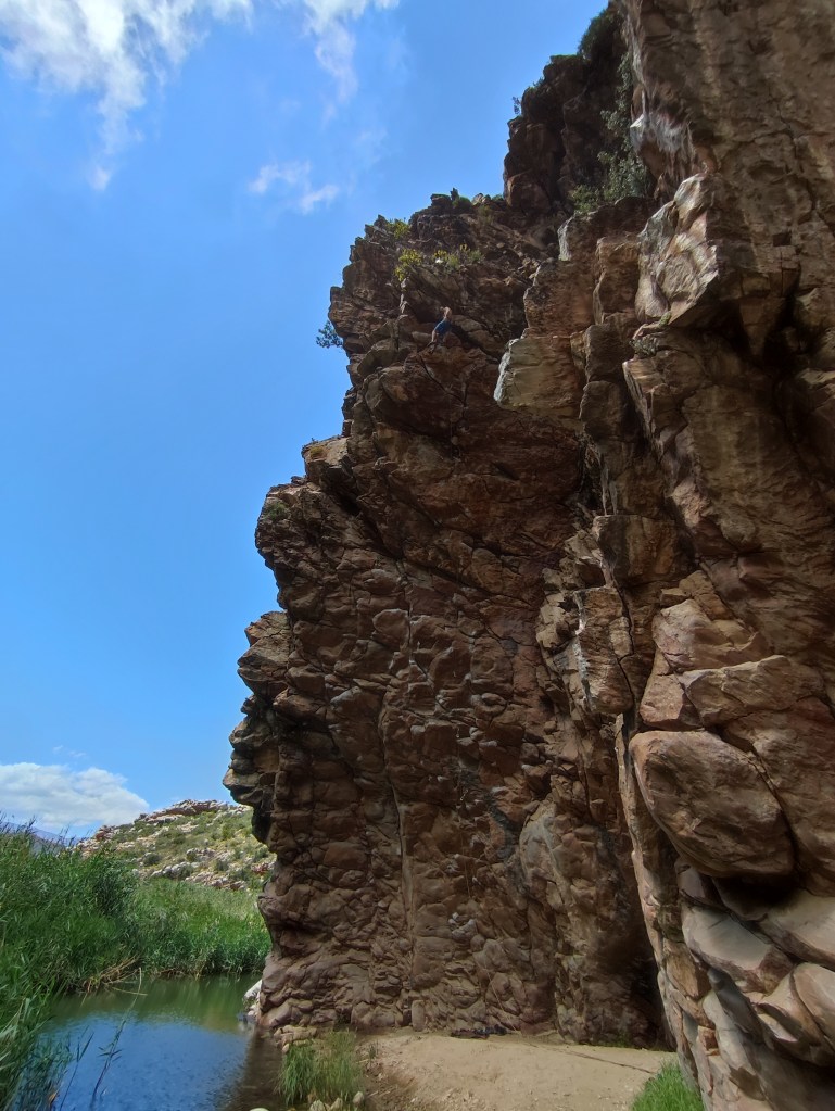 Nachdem uns das raue Klima an der Küste dann doch etwas zu anstrengend geworden ist, befinden wir uns mittlerweile wieder im Landesinneren ca. 3 h von Kapstadt entfernt. Wir wohnen in der Kleinstadt Montagu im Distrikt Cape Winelands. Grund dafür ist nicht nur der Wein, sondern wie ihr euch vermutlich schon denken könnt, die dort zu findenden Klettergebiete. Mit knapp 30 Grad und Sonne lässt es sich hier auch erstmal prima aushalten 🙂