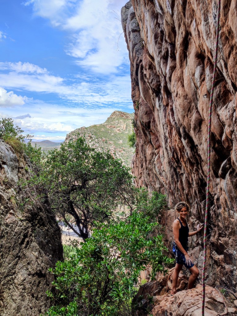 Nachdem es uns dort so gut gefallen hat, verlängerten wir unseren Aufenthalt mal wieder und blieben insgesamt 9 Tage zum Klettern in Montagu im Landesinneren. Wir fanden dort etliche tolle Kletterfelsen, erkundeten die Höhlen und abenteuerlichen Wege durch die Naturschutzgebiete, genossen das sommerliche Wetter, die Natur und die tollen Aussichten. Und natürlich durfte auch das abendliche Braai in unserem Garten nicht fehlen.