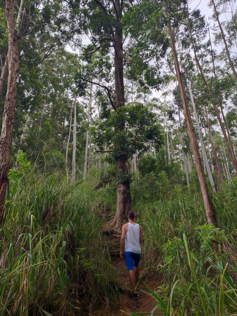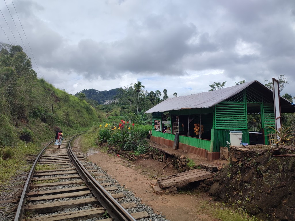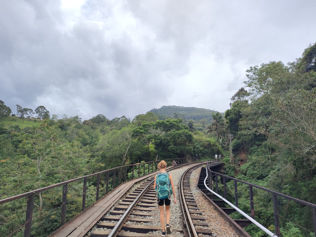 Von unserem Homestay aus wanderten wir auf den Ella Rock, eine etwa 10 km lange Wanderung, die schon abenteuerlich beginnt. Die ersten 2 km führen nicht etwa auf einem Wanderweg, sondern einfach über die (aktiven) Bahnschienen, die in Sri Lanka von den Einheimischen als ganz normaler Fußweg genutzt werden. Ankommende Züge kündigen sich mit Hupen an, auf das man schnell ins Bankett ausweichen kann 🙂