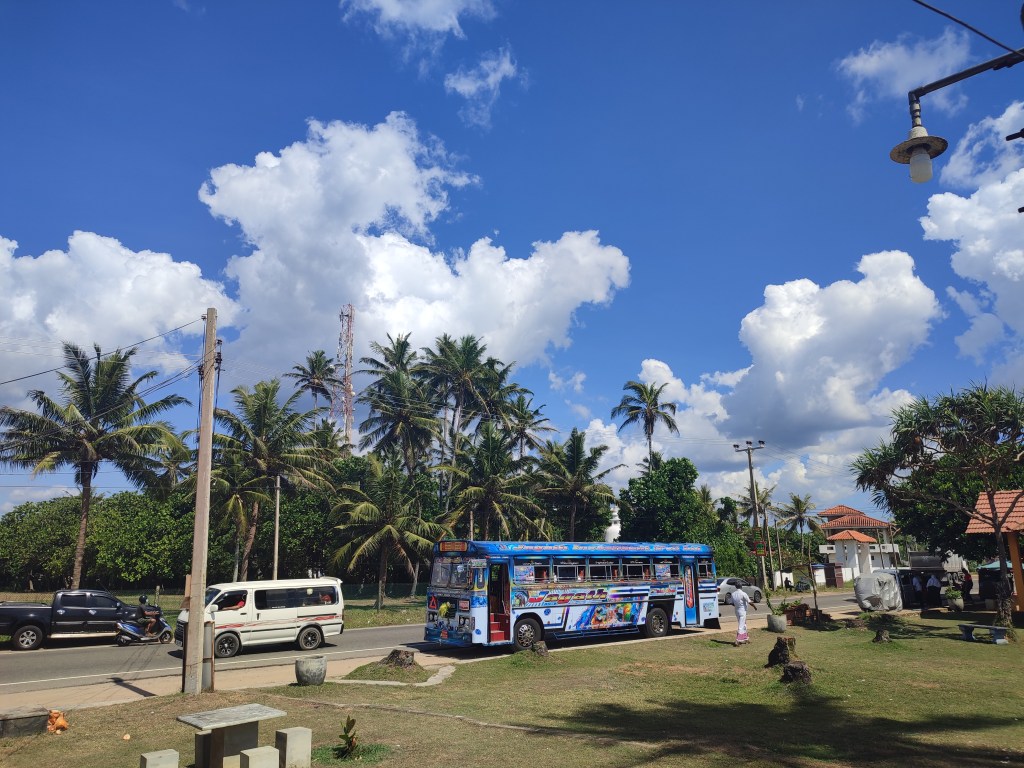 Ein Verkehrsmittel fehlte uns noch in Sri Lanka: der Bus. Diese sind immer und überall auf den Straßen zu finden und fallen nicht nur durch ihre bunte Bemalung, sondern hauptsächlich auch durch wildes Hupen und ihre rabiate Fahrweise auf. Eines muss man im Straßenverkehr in Sri Lanka wissen: Busse haben IMMER Vorfahrt! Wir sprangen also in einen der Busse – die Mühe anzuhalten machen sich Busfahrer mal weniger und mal mehr – um im benachbarten Koggala die berühmten Stelzenfischer zu sehen, eines der Wahrzeichen Sri Lankas. Mittlerweile wird diese Art des Fischens jedoch nicht mehr aktiv betrieben, sondern lediglich für Touristen nachgestellt.