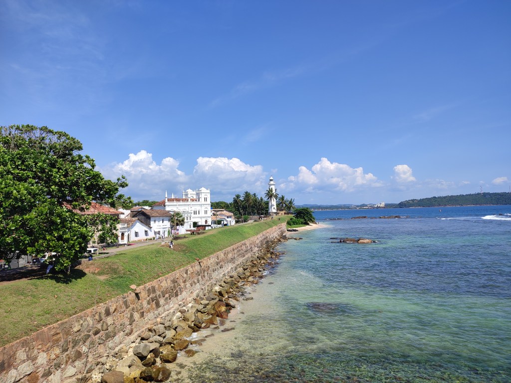 Vorerst letzte Station in Sri Lanka sollte der Küstenort Galle werden. Das Stadtbild ist geprägt von der von den Niederländern errichteten Festung Galle, die man auf einer knapp 3 km langen Wallanlage umrunden kann. Wir suchten uns eine Unterkunft inmitten der Anlage und fühlten uns beim Schlendern durch die Gassen mit im Kolonialstil errichteten Häusern fast wieder nach Europa zurück versetzt. Was für eine Überraschung mitten in Asien! 😀