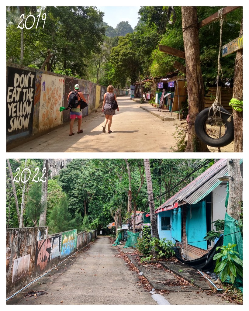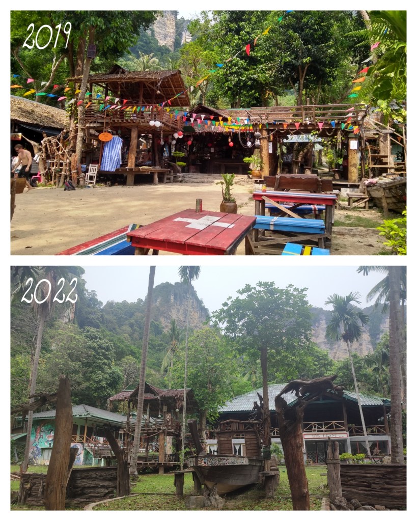 Das erste Mal in Tonsai waren wir zum Jahreswechsel 2018/2019. Damals war das kleine Hippie Dorf noch gut besucht und voller Leben. Doch leider hat Corona hier erhebliche Spuren hinterlassen. Die meisten der Hütten sind mittlerweile verlassen und verfallen. Wie schade um dieses herrliche Fleckchen Erde. Wir hoffen sehr, dass mit steigendem Tourismus einiges wieder aufgebaut und an die besseren Zeiten angeknüpft werden kann!