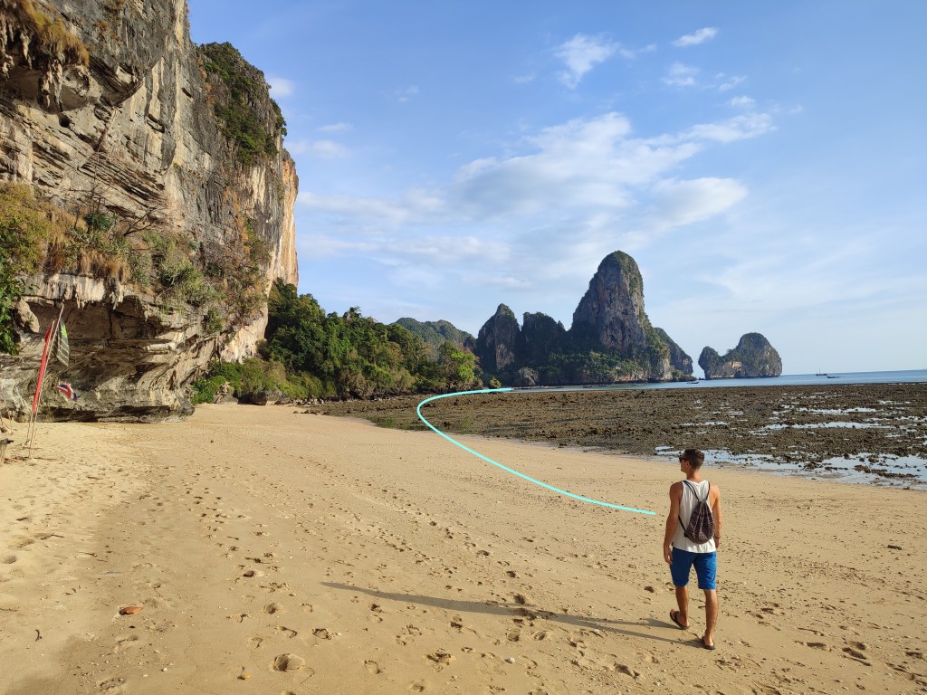 Doch natürlich machen wir auch noch anderes, als nur Klettern und Essen 😉 Schon alleine für den Fußweg nach Railay gibt es 4 Optionen. Eine davon mitten durch den Dschungel. Bei Ebbe ist es außerdem möglich, das kurze Stück direkt am Strand entlang zurück zu legen.