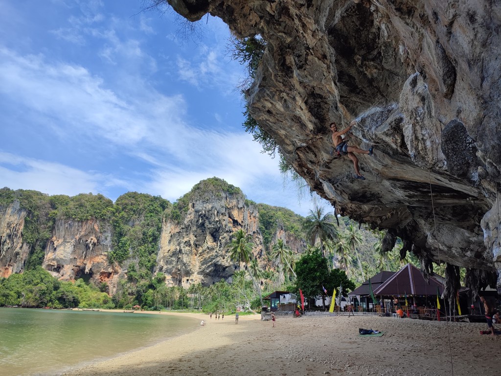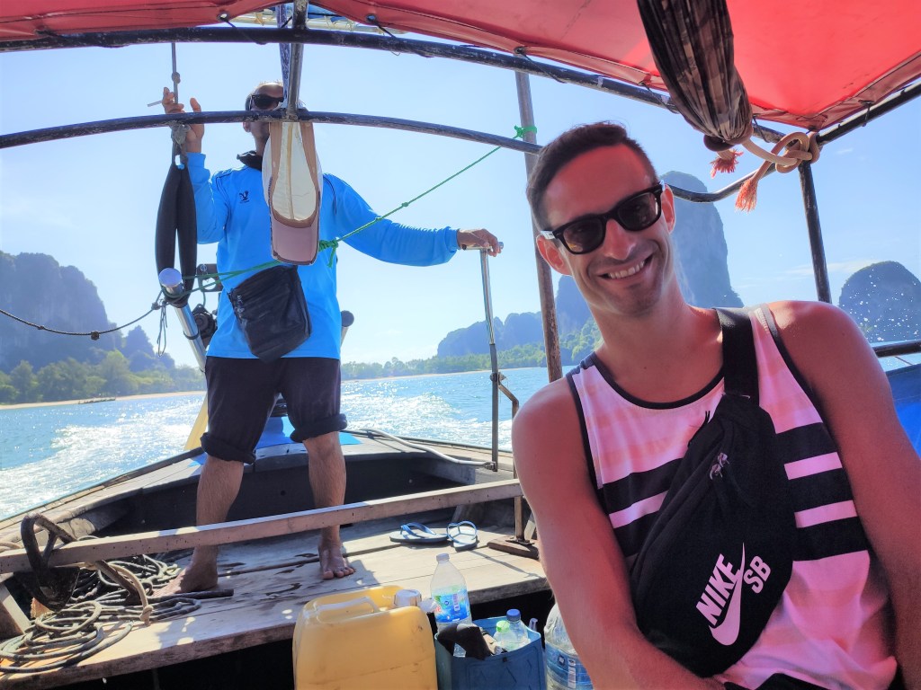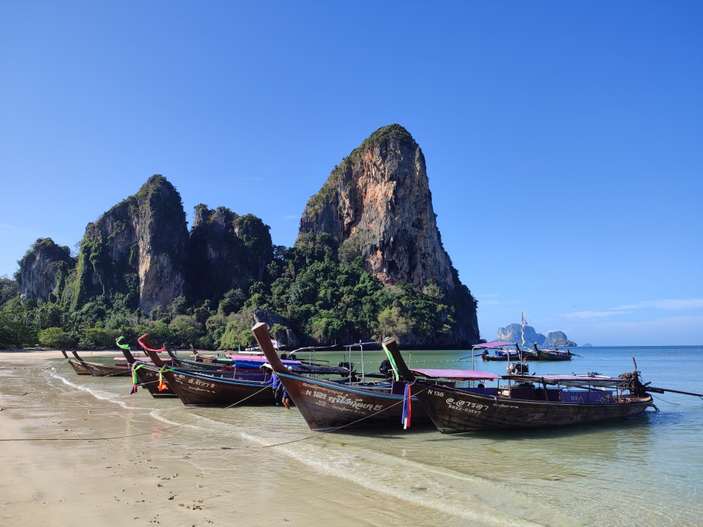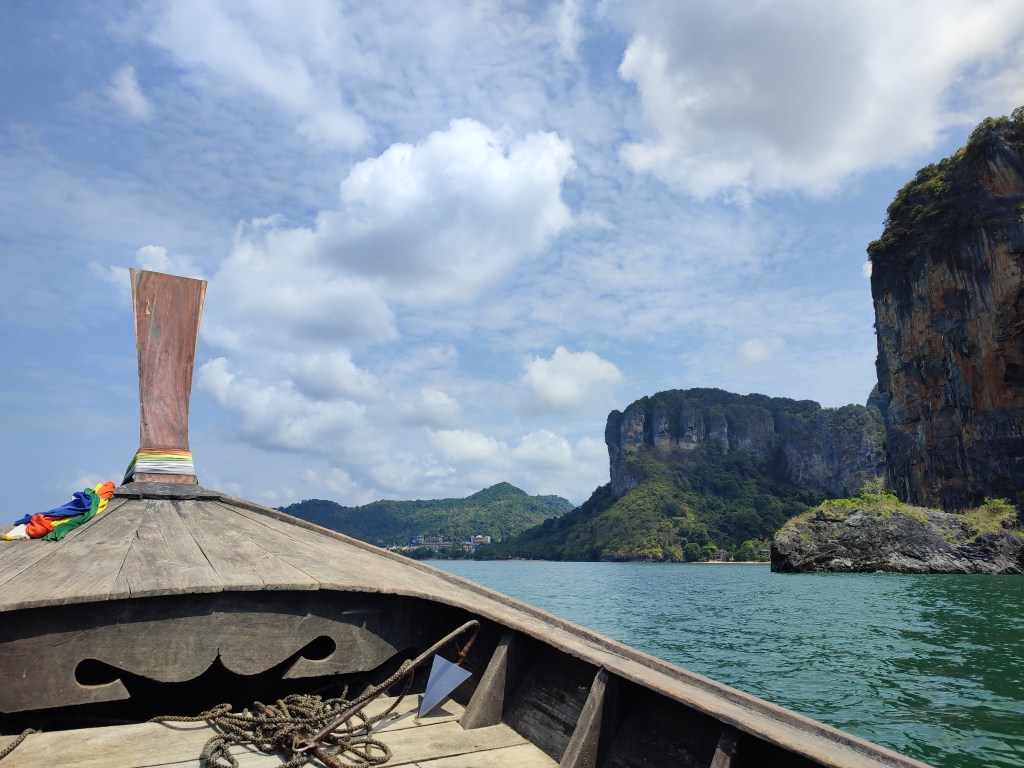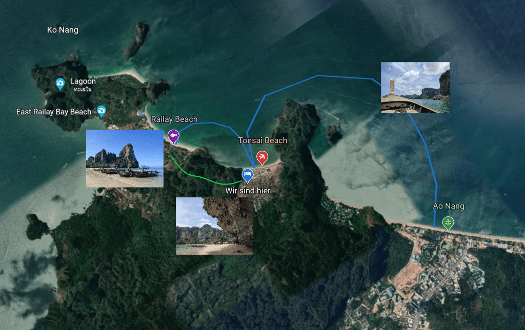 Wie im letzten Blogeintrag schon verraten, befinden wir uns seit nunmehr 14 Tagen in Tonsai. Tonsai ist nicht etwa eine Region oder Stadt, sondern im Wesentlichen ein Strandabschnitt. Tonsai ist durch den Dschungel vom Landesinneren abgetrennt und daher nur mit dem Boot von Ao Nang, der nächstgrößeren Stadt, aus erreichbar. Die Überfahrt erfolgt mittels sogenannter Longtailboote, einfachen länglichen Holzbooten, die mit regulären Automotoren betrieben werden und in denen 8-10 Menschen Platz finden. Die Motoren werden einfach außen auf die Boote montiert. Extrem laut aber auch ein großer Spaß! 🙂