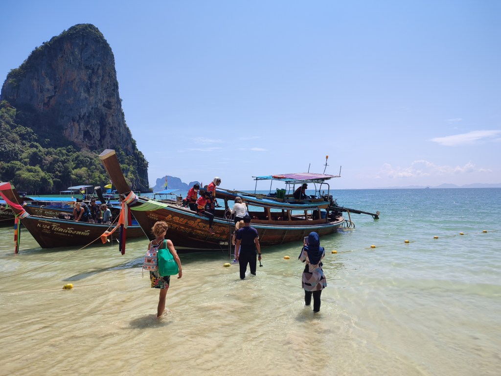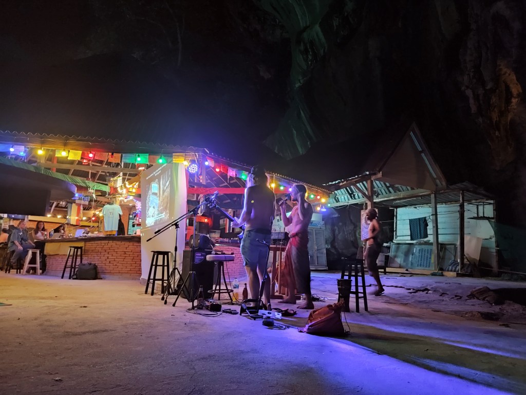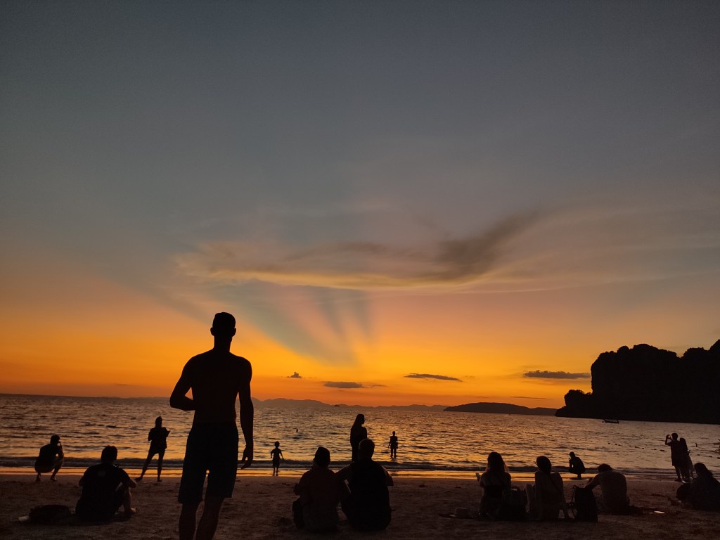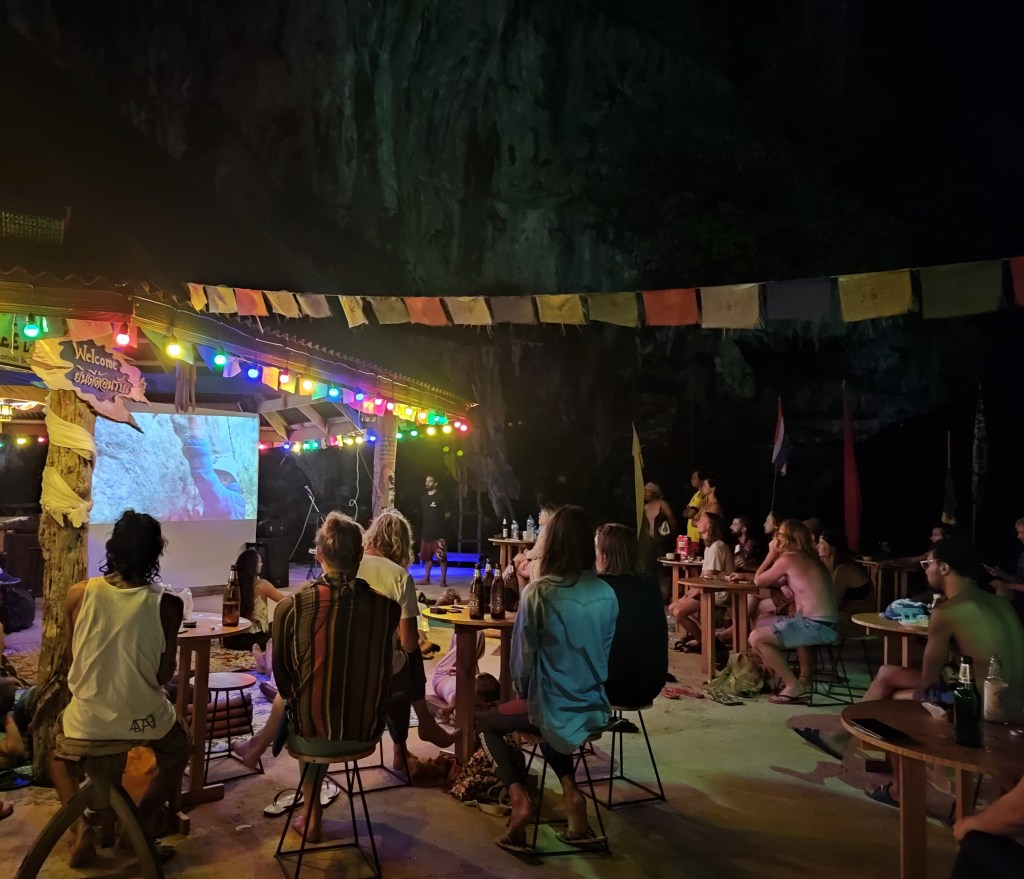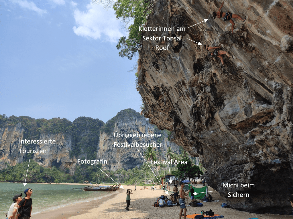 Etwas turbulenter als bei uns in Tonsai geht es mittlerweile in der Nachbarbucht Railay zu. In den letzten Wochen war dort ein deutlicher Touristenanstieg zu bemerken. Die Restaurants und Bars sind wieder gut besucht und zum Sonnenuntergang reiht sich Strandmatte an Strandmatte. Das Klientel dort ist ganz unterschiedlich. Vertreten sind sowohl Pauschal-, als auch Rucksacktouristen, Familien mit kleinen Kindern, ältere Ehepaare und natürlich auch Gruppen von jungen (britischen) Erwachsenen auf der Suche nach Party und Rausch. Möglichkeiten dazu gibt es hier diverse. In eigentlich allen Bars werden ganz offen nicht nur alkoholische Getränke, sondern auch zum Beispiel Cannabisprodukte in Form von Joints und Brownies oder halluzinogene Pilze als Shakes angeboten.