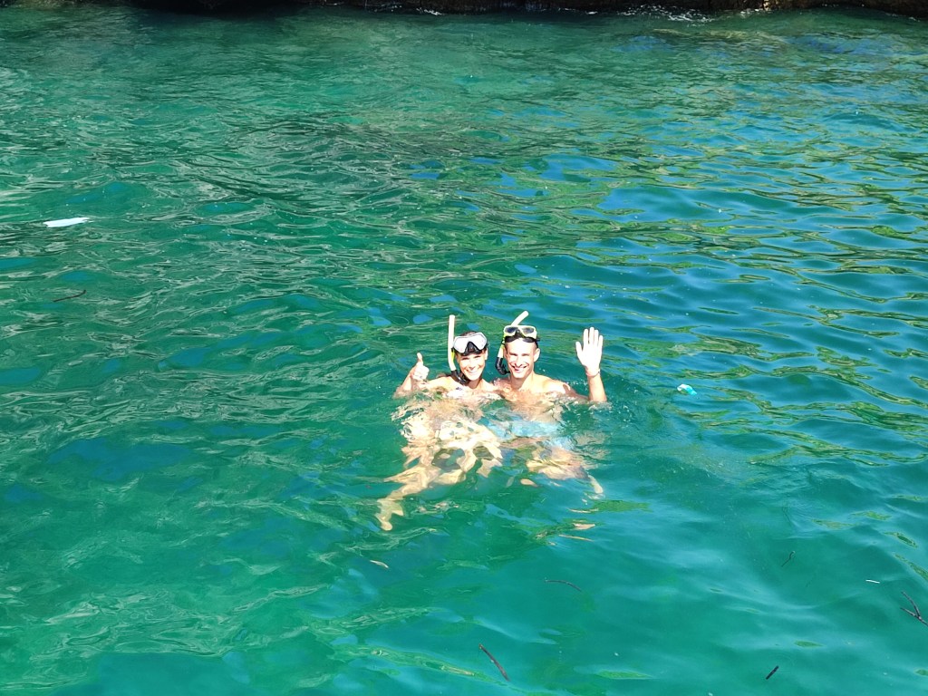 An unserem ersten Hochzeitstag gönnten wir uns ein ganz besonderes Erlebnis: wir buchten die 7 Islands Sunset Tour inklusive Schnorcheln, dem Besuch mehrerer Inseln und einem Barbecue am Strand bei Sonnenuntergang. Aufgrund starken Wellengangs war die Sicht beim Schnorcheln leider eher nicht so gut. Nichts desto Trotz gab sich unser Guide die allergrößte Mühe, uns zu den angeblich sichtbaren Korallen zu lotsen. Als dann jedoch immer mehr Quallen um uns auftauchten, lehnten wir doch lieber dankend ab und retteten uns auf schnellstem Weg zurück aufs Boot. Auch nach mehrfachem Nachzählen kommen wir nach wir vor auf 4 und nicht 7 Inseln, die wir im Laufe des Nachmittags ansteuerten. Diese waren dafür aber umso spektakulärer und das Erlebnis, ganz alleine bei Sonnenuntergang auf einer einsamen Insel zu sein, unbezahlbar. Als Abschluss stand noch das bei Dunkelheit leuchtende Plankton auf dem Programm. Allerdings hatte komischerweise keiner der Teilnehmer Lust, bei Sturm und rauer See durch ein nahendes Gewitter vom Boot ins Wasser zu springen um dieses zu suchen. Wir wagen ja auch zu bezweifeln, dass die Suche tatsächlich von Erfolg gekrönt worden wäre, sondern vermuten, dass das Angebot eher aus Pflichtbewusstsein (oder Verzweiflung) des Guides erfolgt war 😉