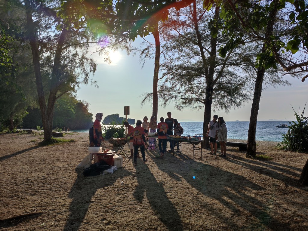 An den Wochenenden werden gemeinsame Filmabende veranstaltet oder Livemusik gespielt. Bei knapp 20 Mann, die alle wie wir für mehrere Wochen oder Monate bleiben, herrscht eine fast familiäre Atmosphäre. Nur ein Wochenende wurde es voll in unserem Paradies: für ein Musikfestival reisten etliche Bands und ein paar hundert Asiaten mit zahlreichen Paletten Bier an, um drei Tage lang durchzufeiern. Eine willkommene Abwechslung aber am Ende waren wir doch froh, „unser“ Tonsai wieder für uns alleine zu haben.