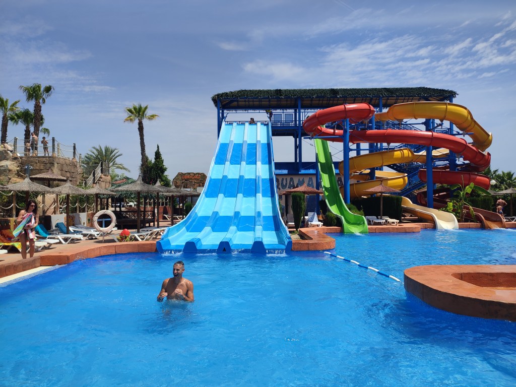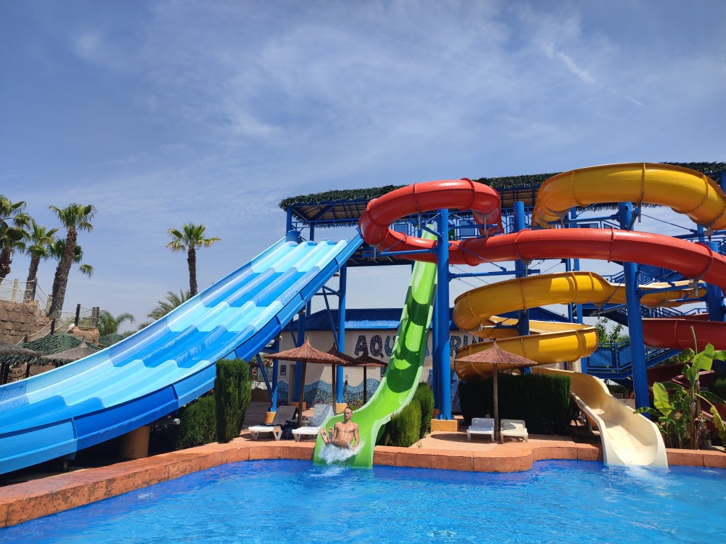 Zurück in der Zivilisation führte uns unsere Reise weiter Richtung Süden. Einen ersten Stopp machten wir in Alicante, einer Hafenstadt an der Costa Blanca im Südosten Spaniens. Nach dem eher einfachen und ruhigen Stellplatz der letzten Wochen (8 Euro pro Nacht) entschieden wir uns als Kontrastprogramm mit La Marina Resort & Camping für eine sehr touristische Anlage inklusive Wachmaschine (dringend nötig!), privatem Bad und Küche am Stellplatz, Supermarkt, Restaurants und Aqua- und Rutschenpark – letzterer speziell für Michael das ganz große Highlight 😀