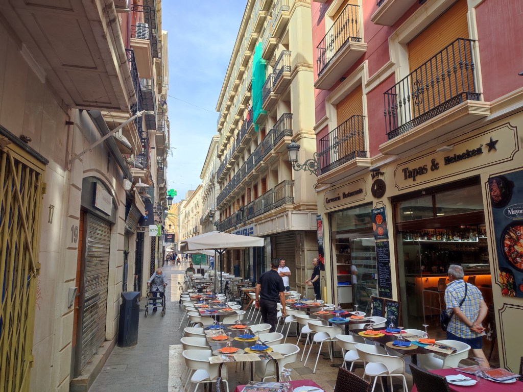 Alicante selbst gilt als eine der schönsten Städte entlang der Costa Blanca. Und auch wir waren begeistert von der Schönheit der Altstadt Barrio de la Santa Cruz mit ihren engen Gassen und bunten Häusern. Direkt an den Hafen grenzt der Stadtstrand Playa del Postiguet, von dem ein Aufzug(!) über 150 Höhenmeter direkt zum mittelalterlichen Castillo de Santa Bárbara führt. Oben angekommen bietet sich von der Festung ein eindrucksvoller Blick über die Mittelmeerküste. Als weiteres Highlight gilt die Explanada de España, eine Promenade, deren Boden mit über 6 Millionen dreifarbigen Marmorsteinchen verziert ist. Und wer sich schon immer mal wie Alice im Wunderland fühlen wollte, ist auf der Carrer dels Bolets (deutsch Pilzstraße) genau richtig.