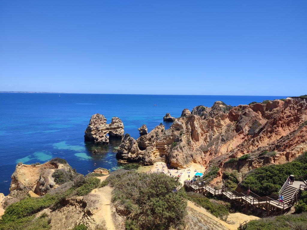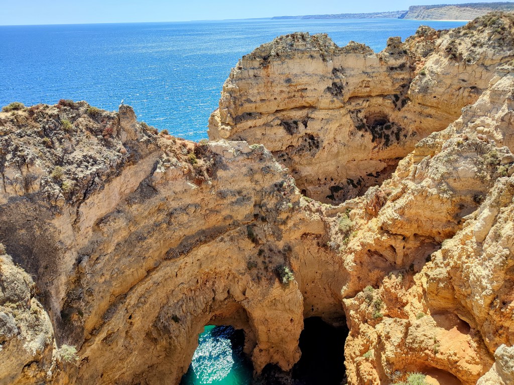 Als erstes zog es uns an die Algarve mit ihren berühmten Felsformationen. Wir machten Halt im Küstenort Lagos. Am Stadtcampingplatz begegneten uns dann direkt auch zahlreiche Aussteiger und Hängengebliebene, Armbandverkäufer und interessante Gestalten, die uns ihre alternativen Ansichten kundtaten. Ja, so in etwa hatten wir uns das vorgestellt 😉 Lagos selbst bezaubert mit seinen kleinen Gassen und kunstvollen Häuserfassaden. Holzstege entlang der Küste führen an den zahlreichen Felsformationen vorbei. Ein wirklich beeindruckender Anblick! Kleine Sandbuchten laden zum Baden ein – es sei denn, man traut sich wie Michi nicht in das kalte Atlantikwasser 😉